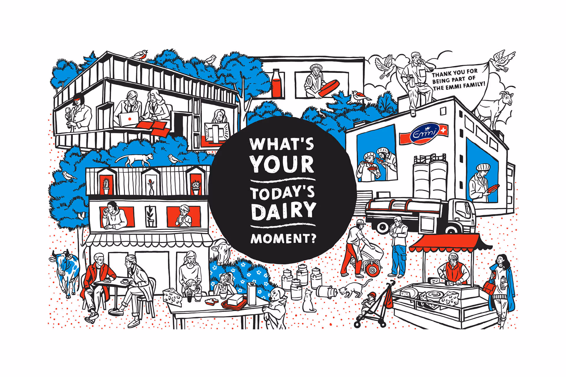 «Die besten Milchmomente sind Emmi Momente» lautet die neue Unternehmens-Vision der grössten Schweizer Milchverarbeiterin. Zur Einführung und emotionalen Unterstreichung der Aussage wurde ein Kurzfilm mit zahlreichen Emmi-Momenten gedreht.