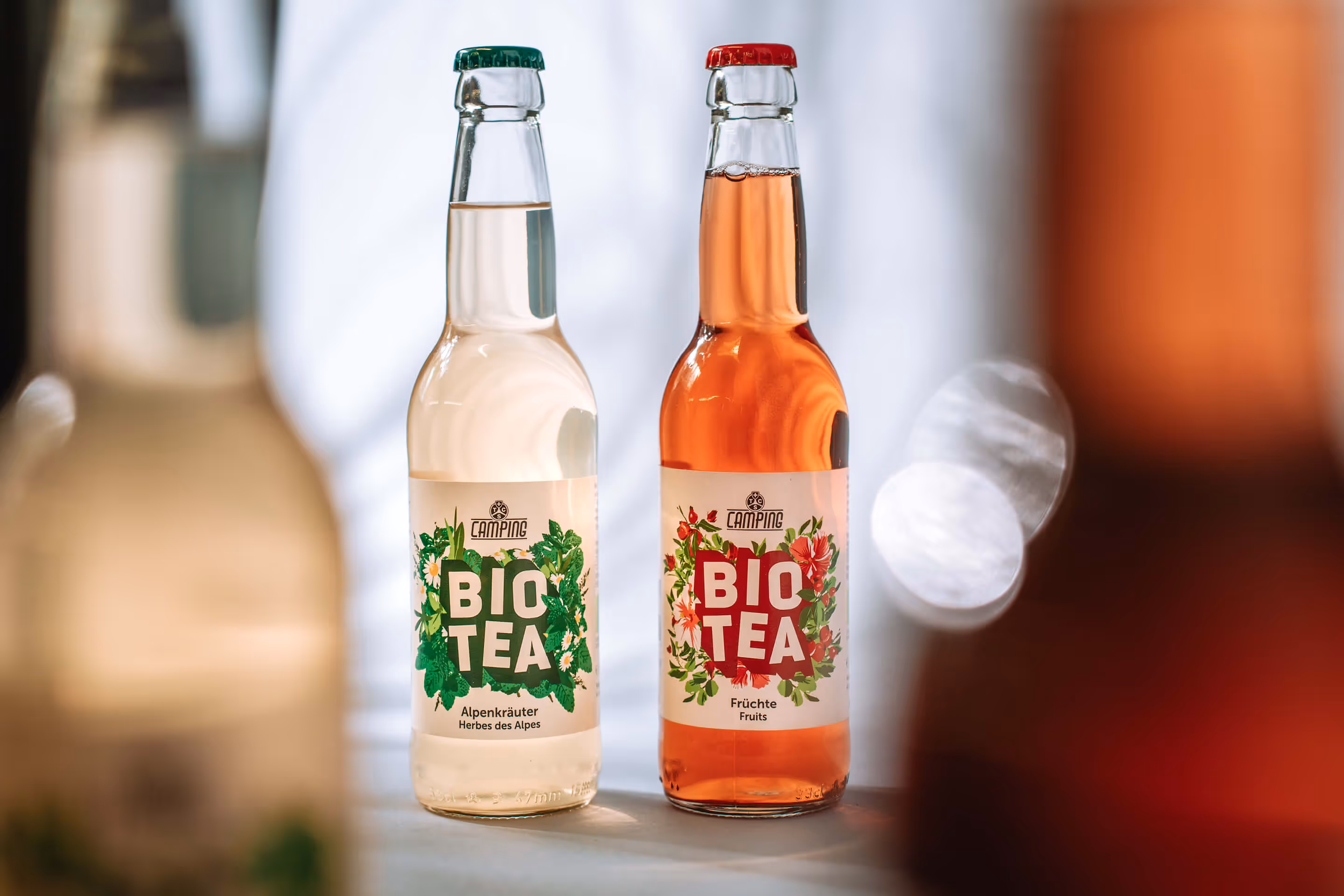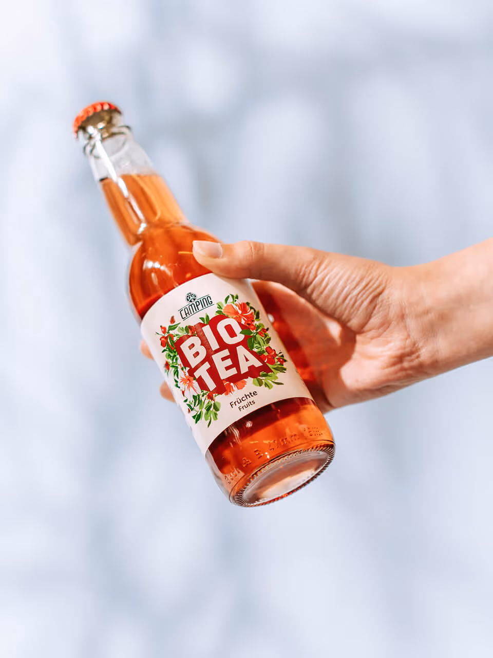 Der Camping-Eistee in den beiden Geschmacksrichtungen «Früchte» und «Alpenkräuter» weckt mit seinen natürlichen Zutaten in Bio-Qualität erfrischende Sommergefühle. Diese Frische sollte auch im neuen Packaging zu spüren sein.