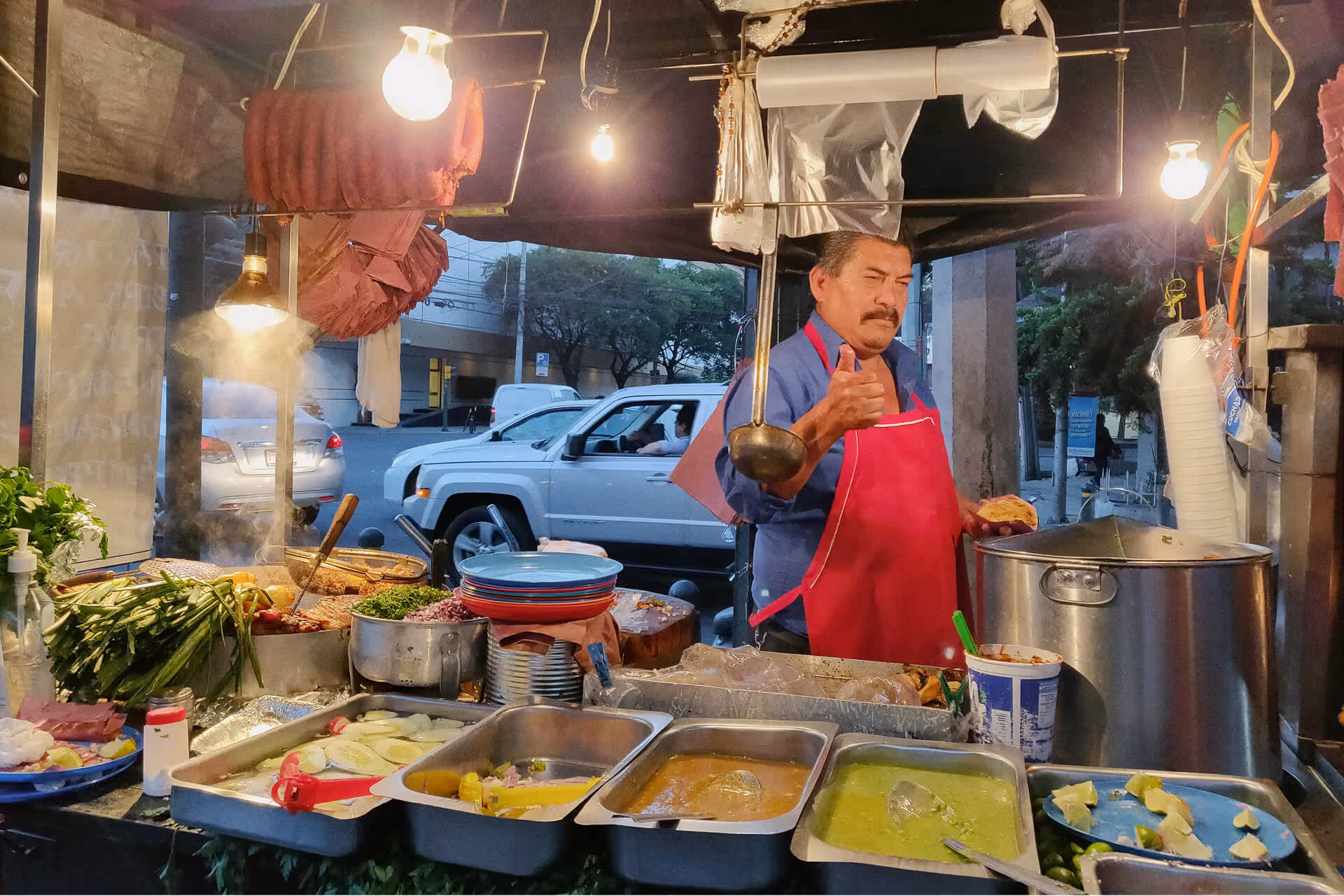 Mittendrin im Businessviertel Juarez befindet sich mein Arbeitsplatz. So navigiere ich mich jeden Morgen vorbei an diversen Foodständen, sehe zu wie sich die Anzugträger sitzend auf einem thronartigen Stuhl die Schuhe polieren lassen und passiere Kiosks die eine Markt-Nische gefunden haben: eine einzelne Zigarette für den Gelegenheitsraucher gefällig? Mein 20minütiger Arbeitsweg wird immer begleitet von einem (inzwischen etwas leidigem) Geruch von Mais. Denn hier brutzeln schon frühmorgens «Tamales» (ein typisch mexikanisches Frühstück bestehend aus Maisteig, Fleisch und Käse), «Tortas» (Sandwiches) und Tacos. Eines meiner Highlights sind die Fruchtstände an denen wahre Vitaminbomben über den Ladentisch gehen. Ob als Saft oder mit ordentlich Chili, Salz und Limette in einem Plastikbecher serviert. Auf jeden Fall «para llevar».