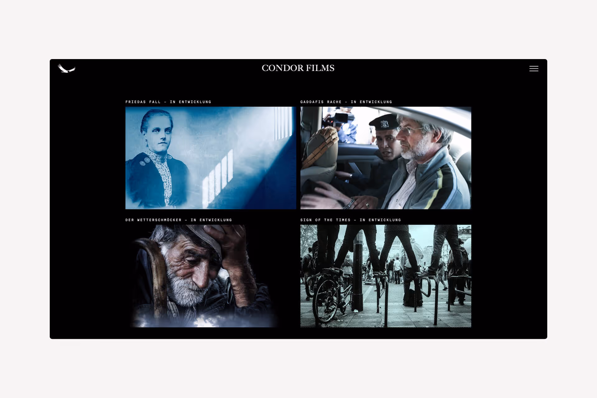 Eine neuer digitaler Auftritt für das legendäre Schweizer Filmproduktionhaus Condor Films.