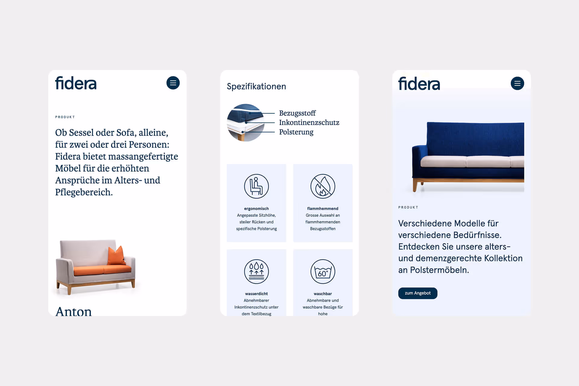 Branding und Website für eine alters- und demenzgerechte Polstermöbelkollektion.