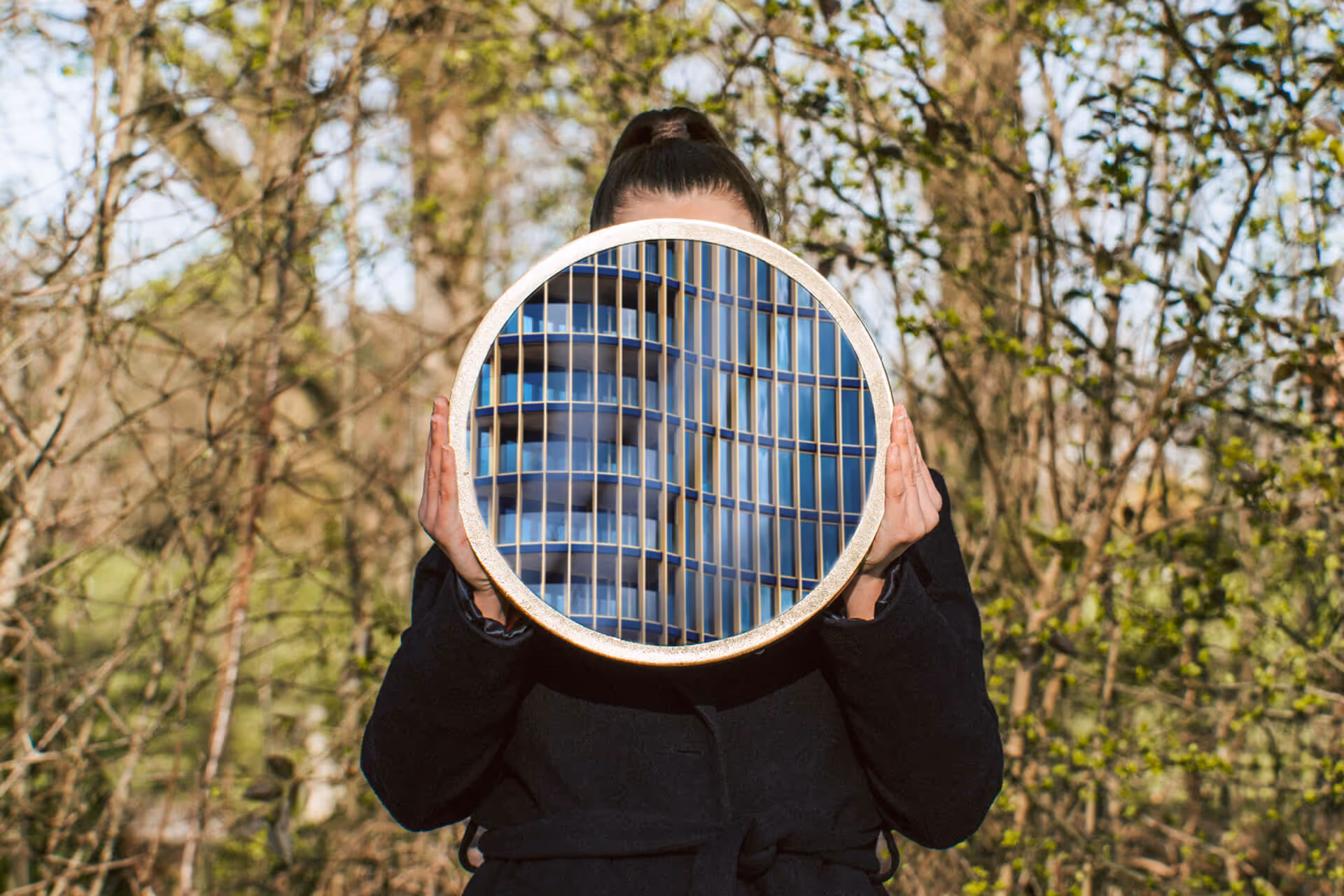 Das Bildkonzept wagt den Spagat zwischen Harmonie und Unruhe. Rastlose Menschen, Verkehr und digitale Ablenkung stehen im Kontrast zu einer friedlichen Umgebung. Der Spiegel dient als Symbol für Reflektion und ist ein Aufruf, sich auch mal selbst den Spiegel vorzuhalten und an sich zu arbeiten.