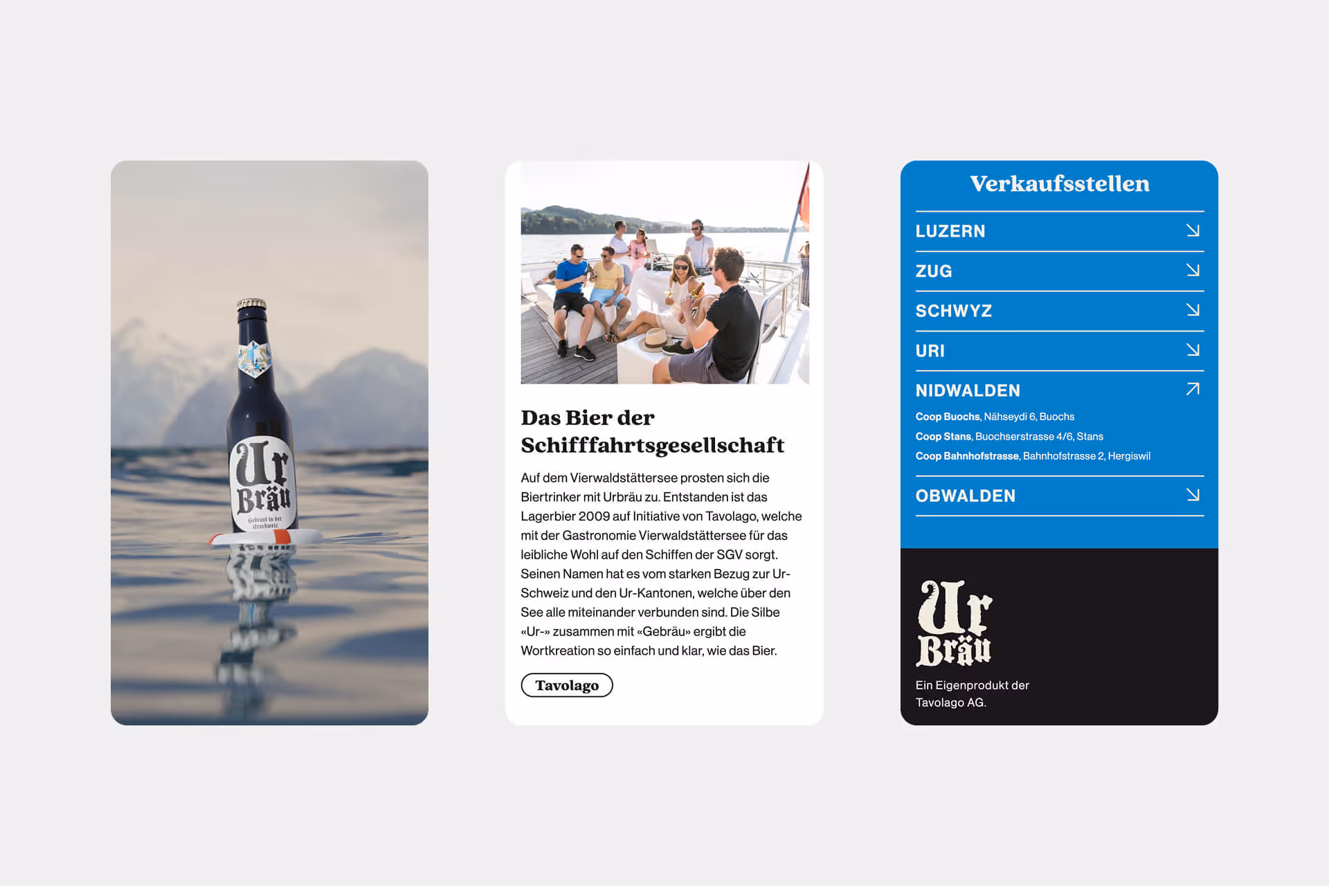 2009 lancierte die Tavolago AG mit «Urbräu» ihr eigenes Bier. Ein Lagerbier für die Schifffahrtsgesellschaft des Vierwaldstättersees, welches mit seinem harmonischen, herben, würzigen Geschmack perfekt zu einer erfrischenden Seebrise passt. Während sich das Bier auf den Schiffen der SGV grosser Beliebtheit erfreut, war die Website seither ganz schön in die Jahre gekommen, wenn nicht sogar dem sicheren Untergang geweiht. Sicherheitslecks und andere Gefahren lauerten im weltweiten Web auf die alte, sperrige Seite.